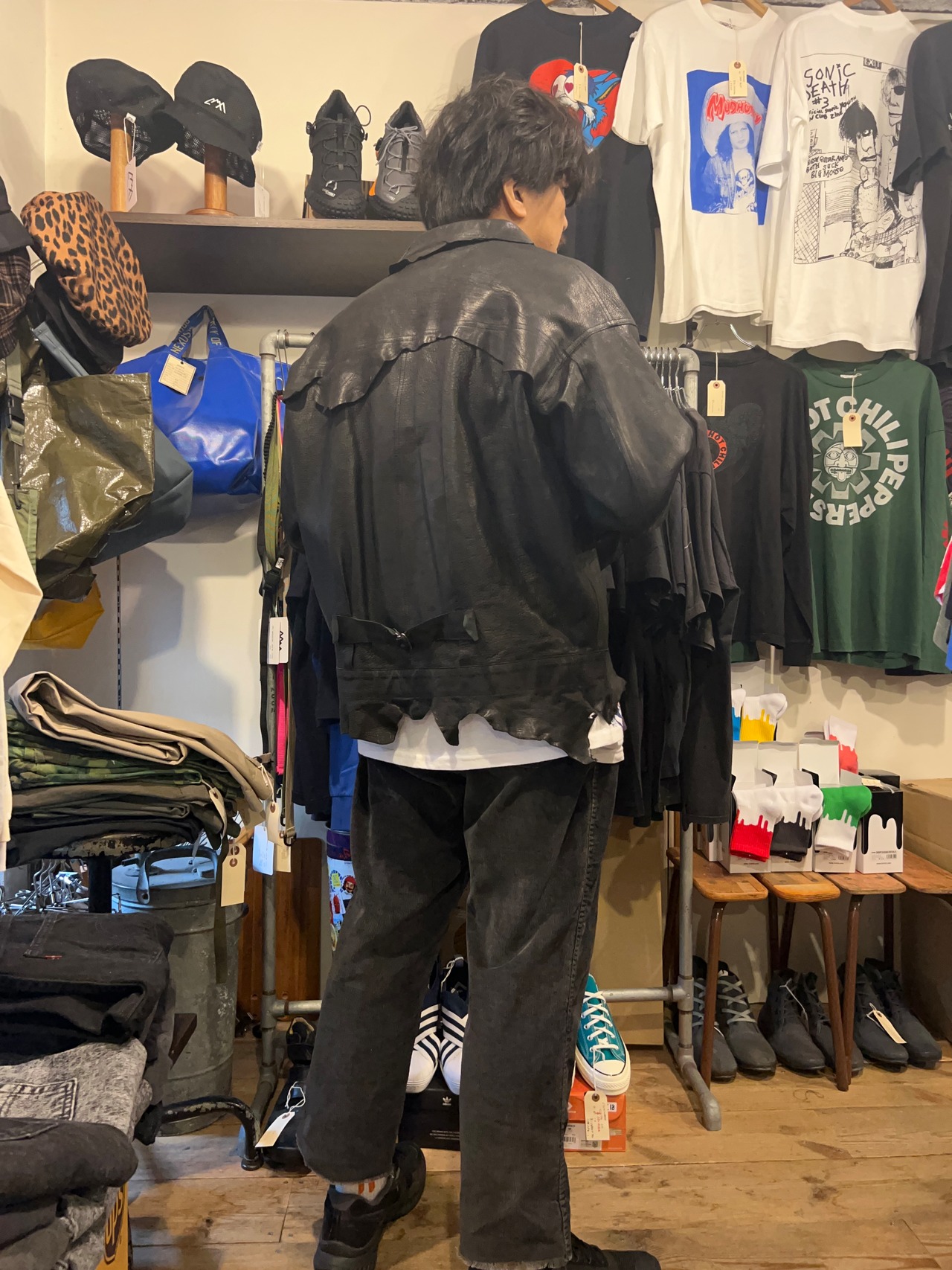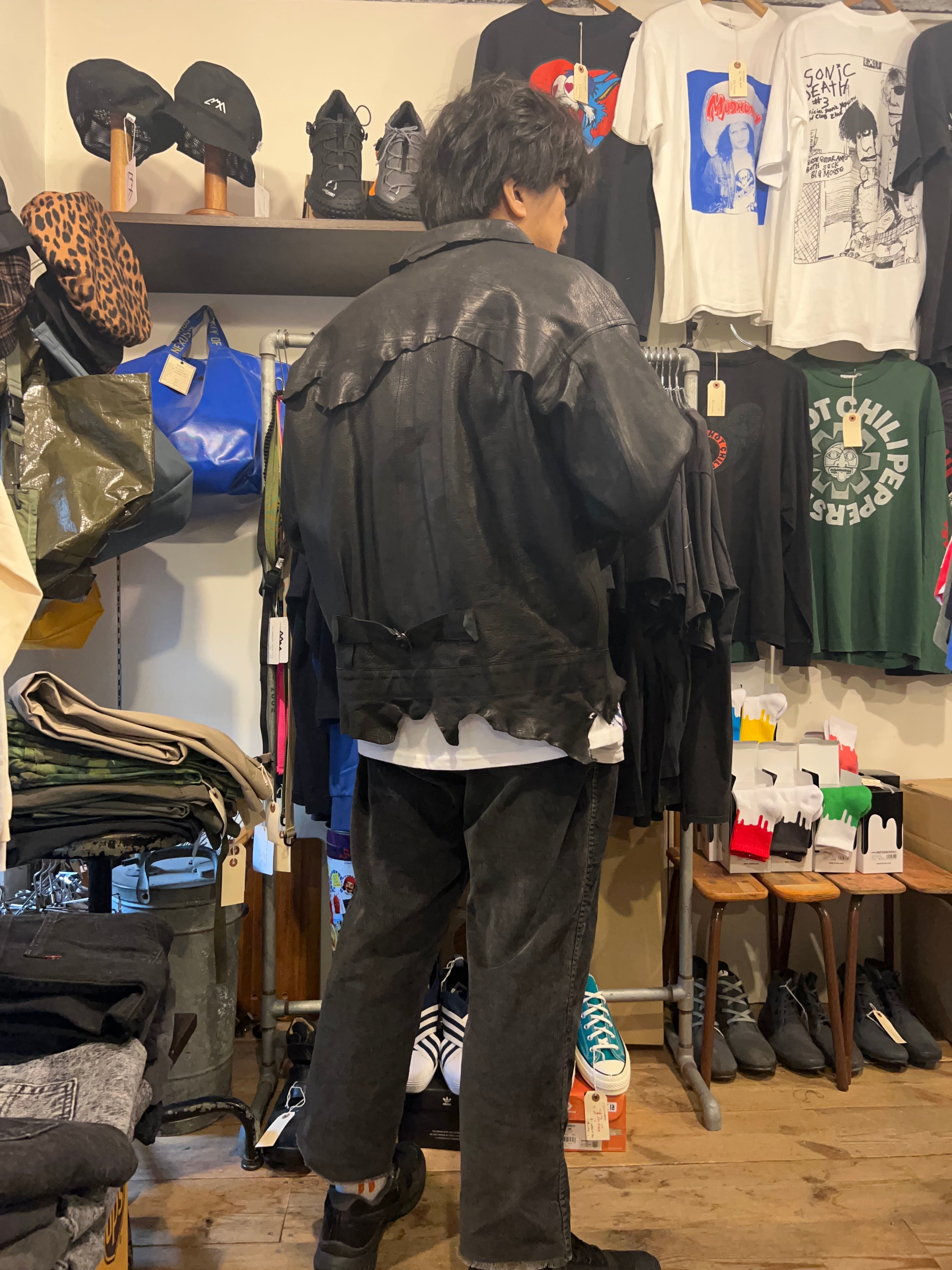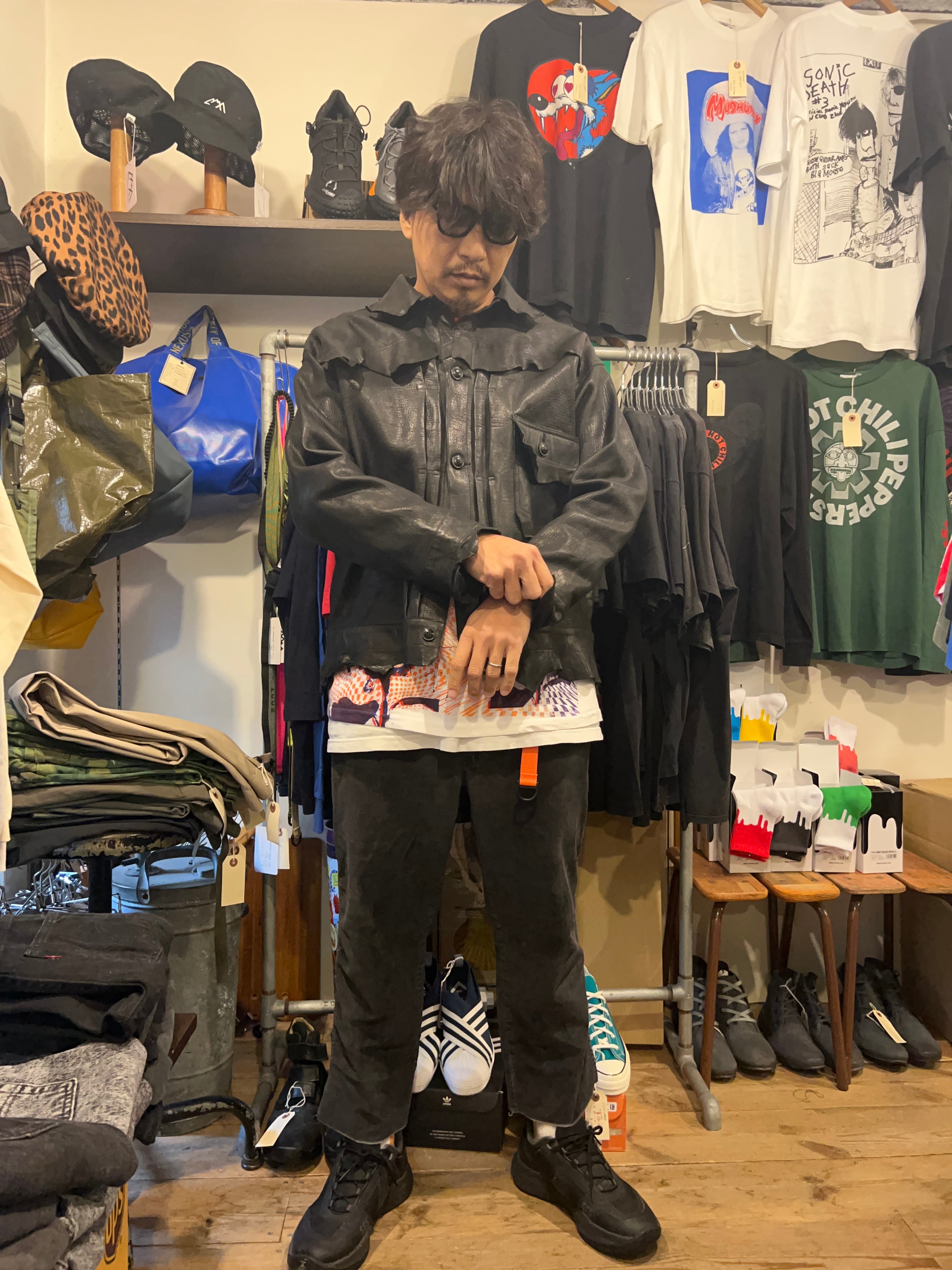非常に表情の強いエゾシカの革を使ったレザージャケット