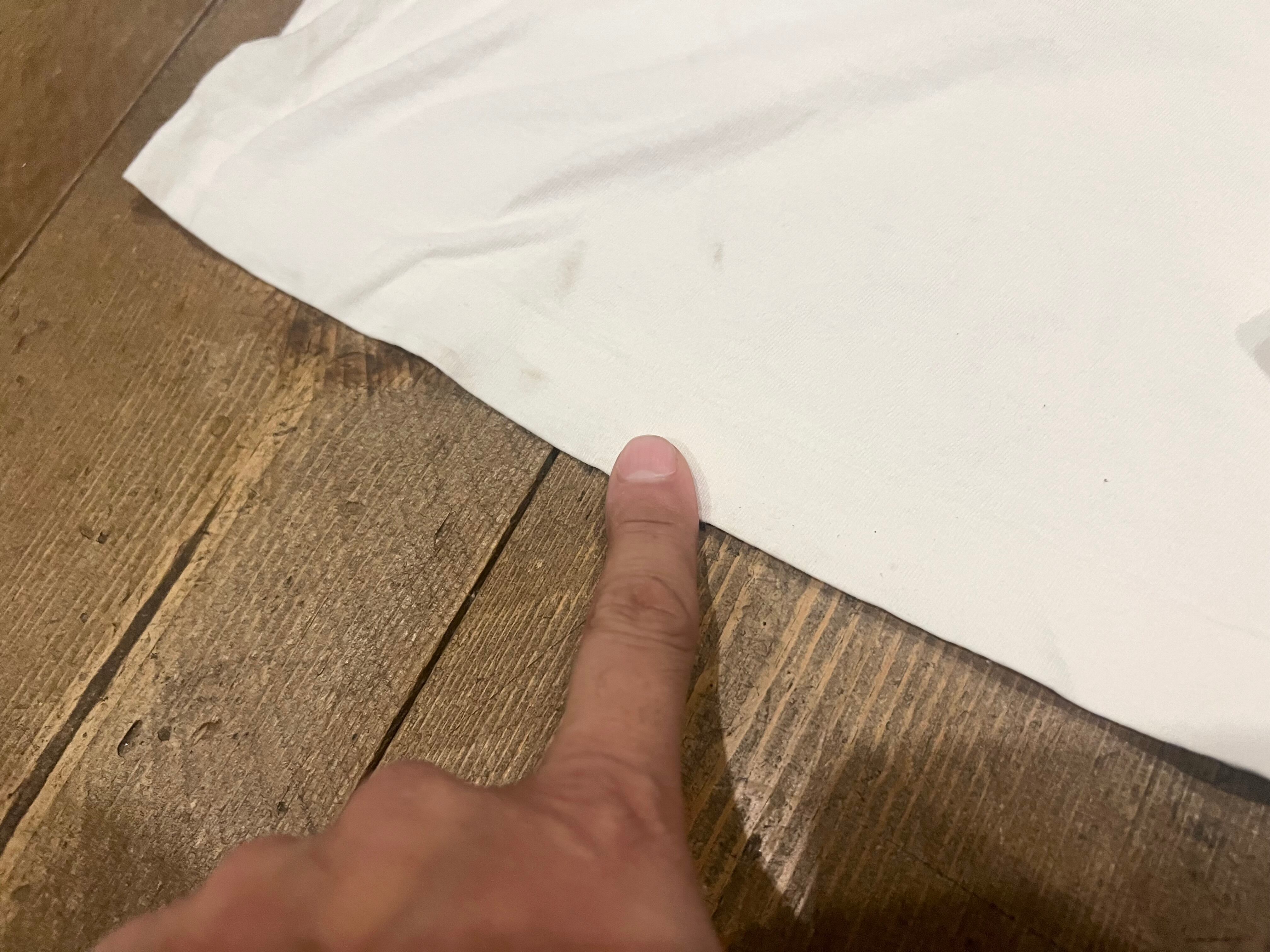 フロント裾辺りに僅かな汚れ、袖口辺りにピンホールがあります
