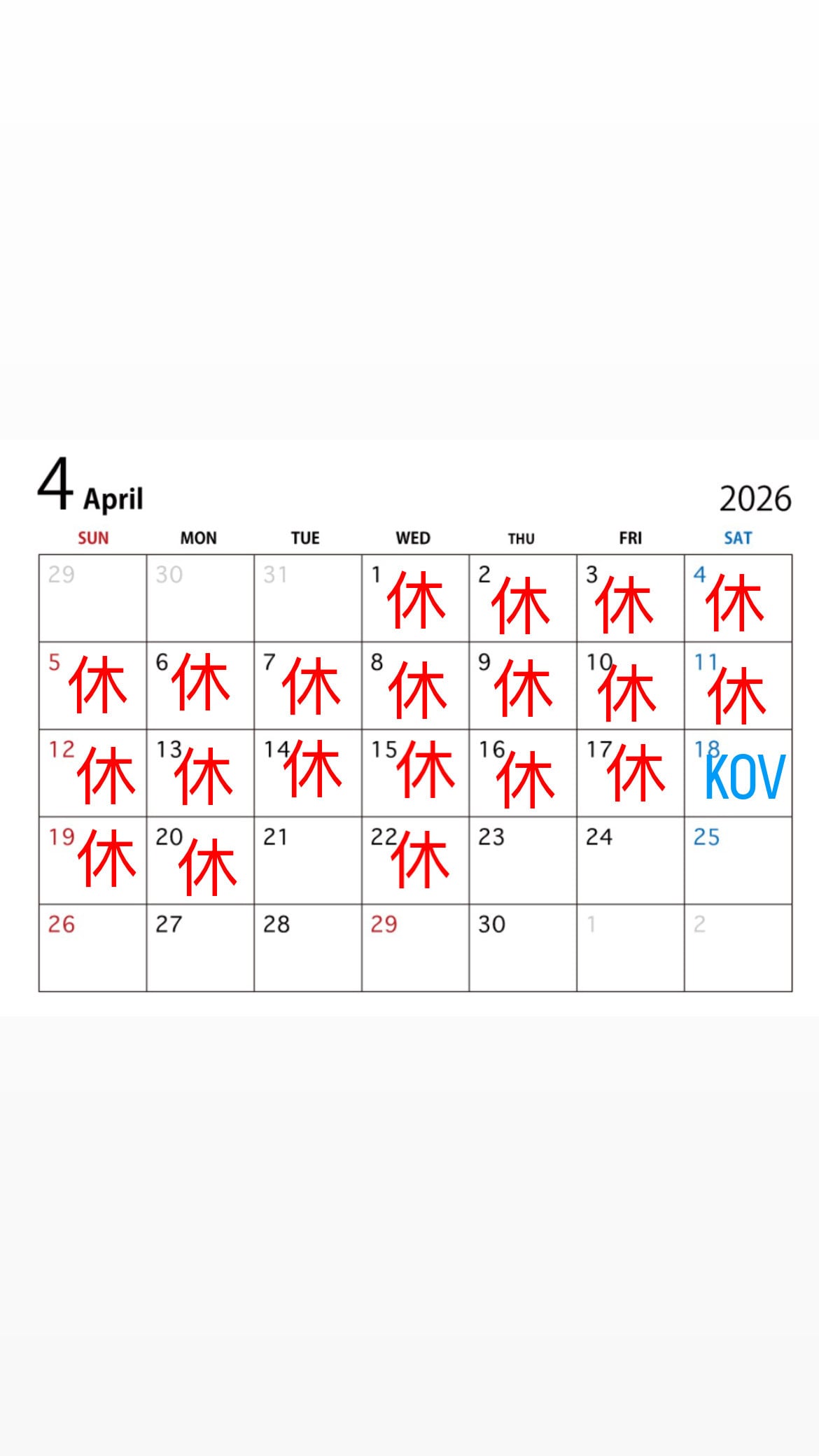 4月の営業日程(予定)