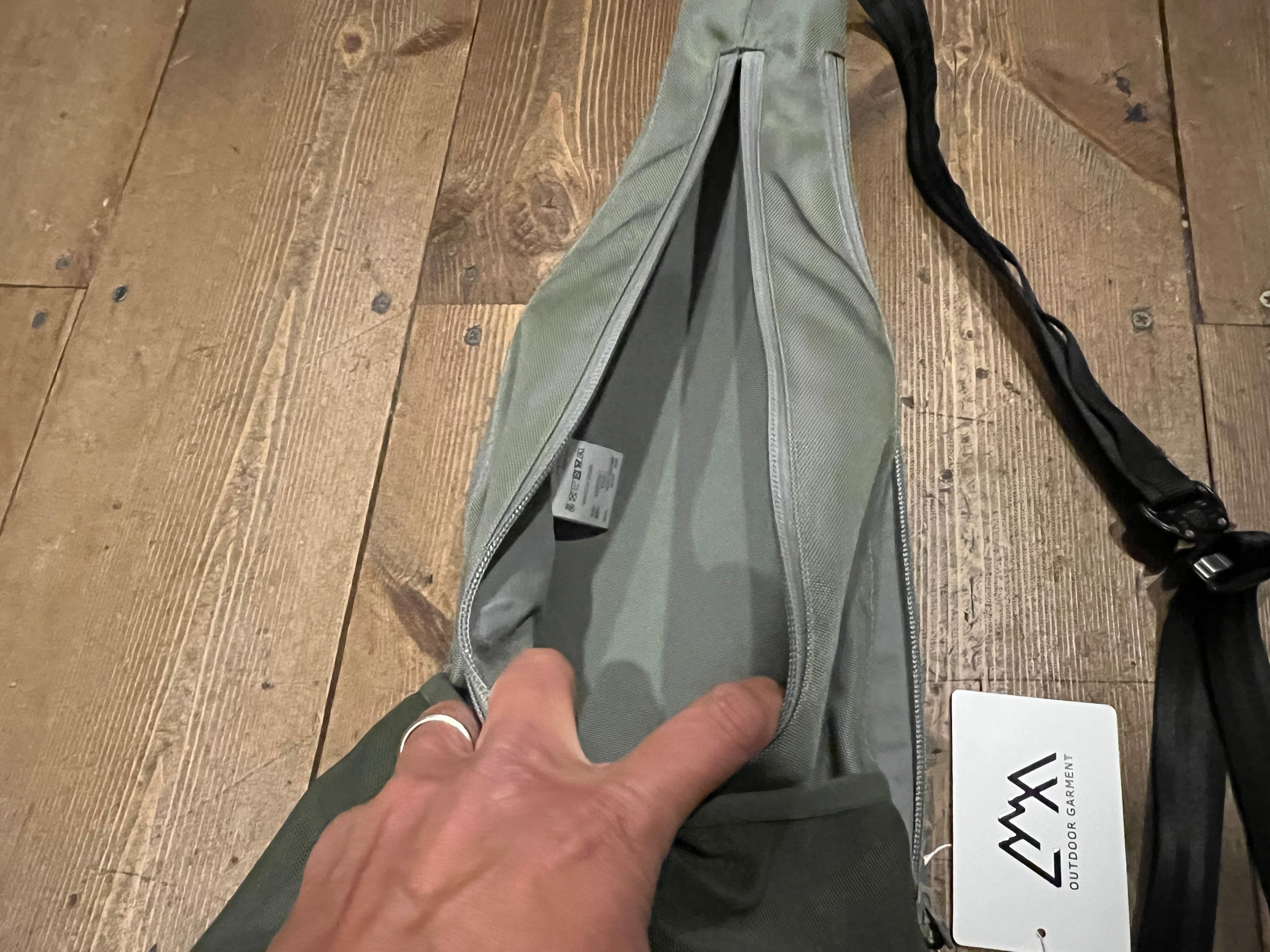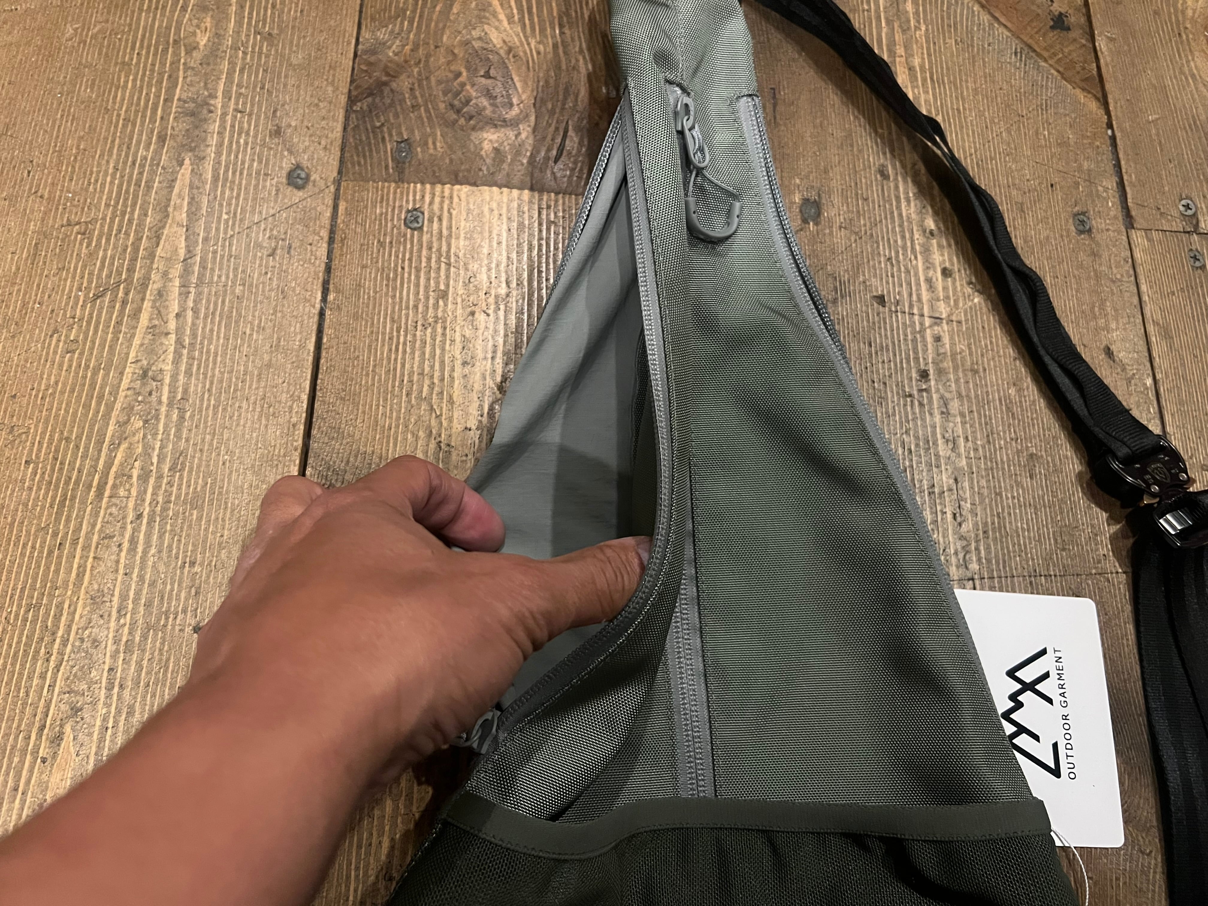 バッグの形状に沿って3つのファスナーが付き、それぞれが別部屋になっています