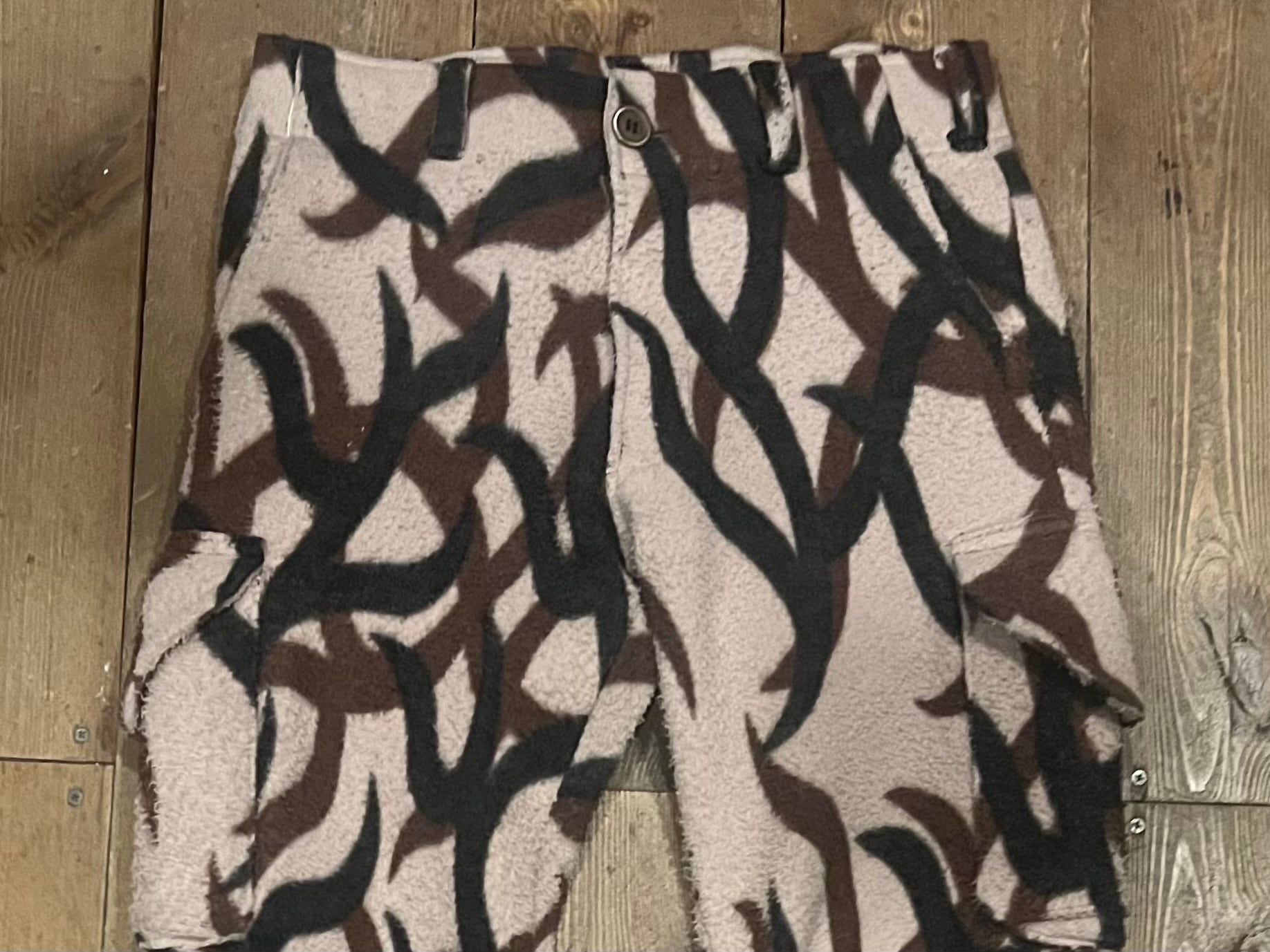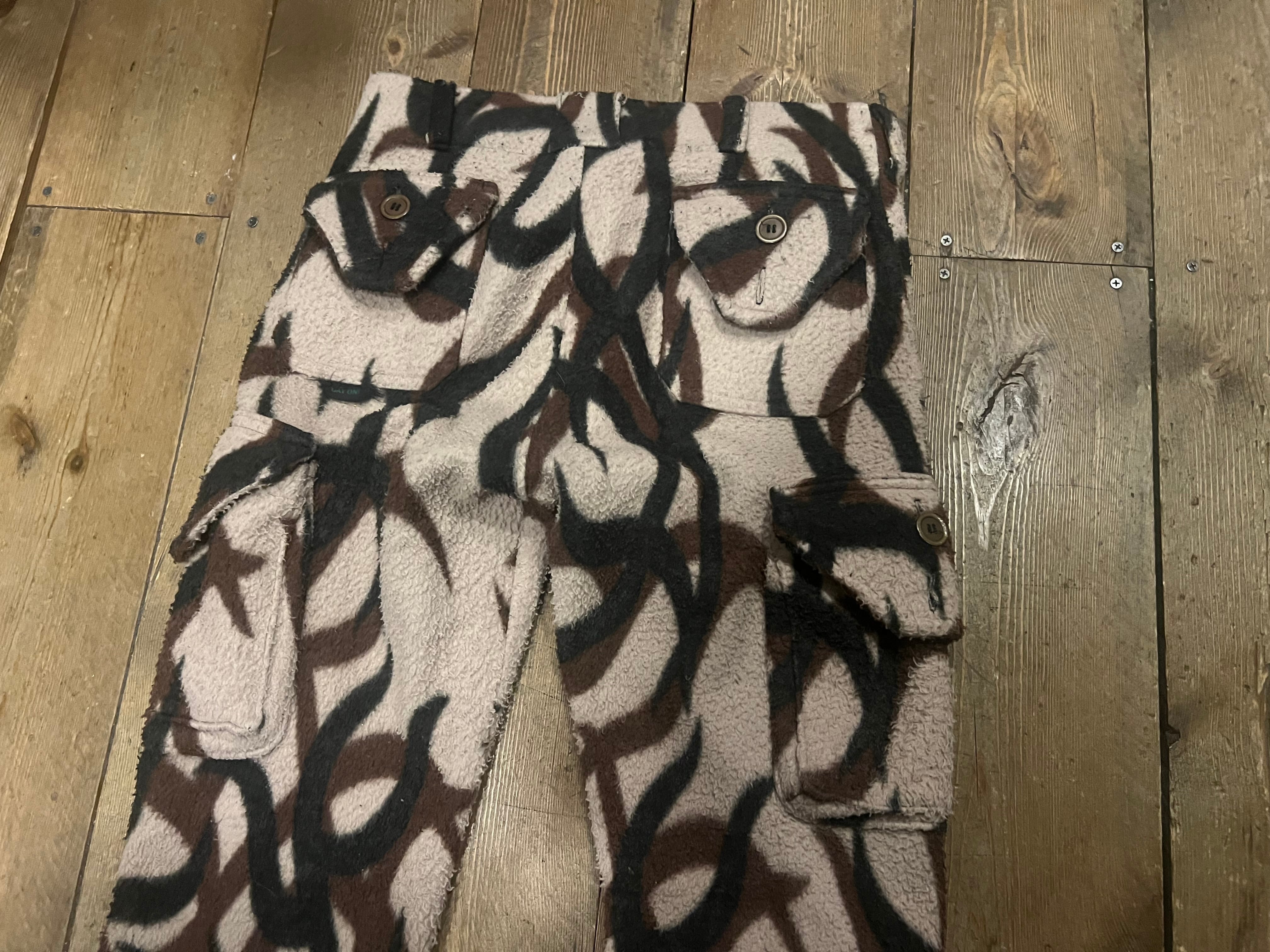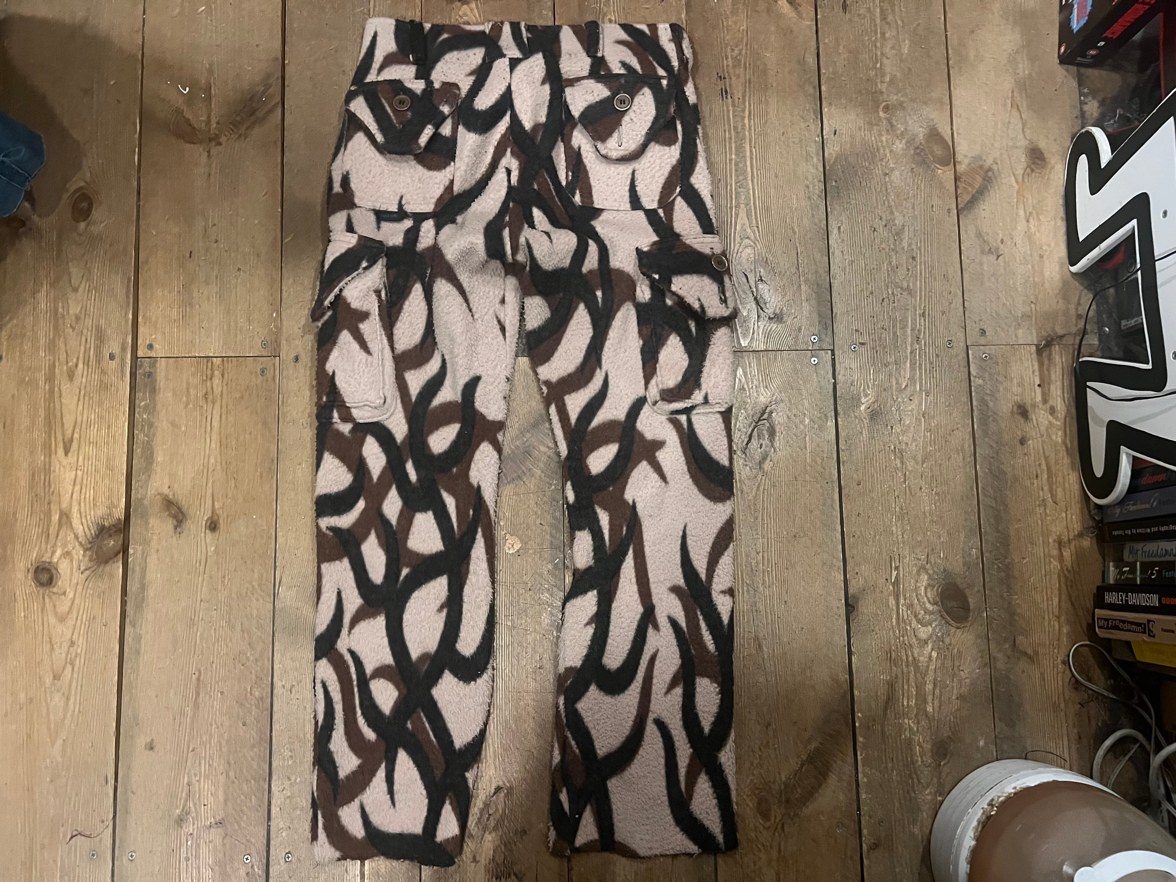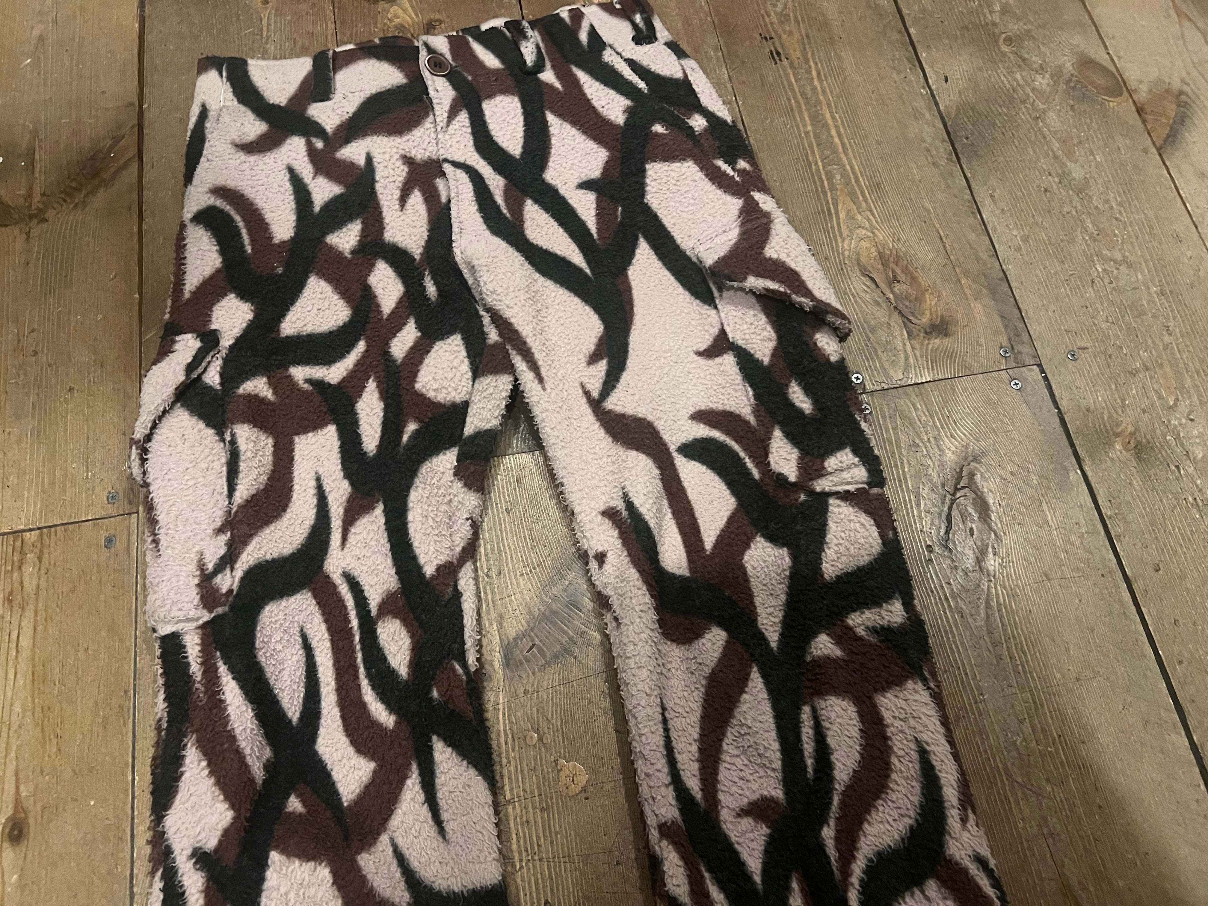 トライバルカモパターンのフリースパンツ