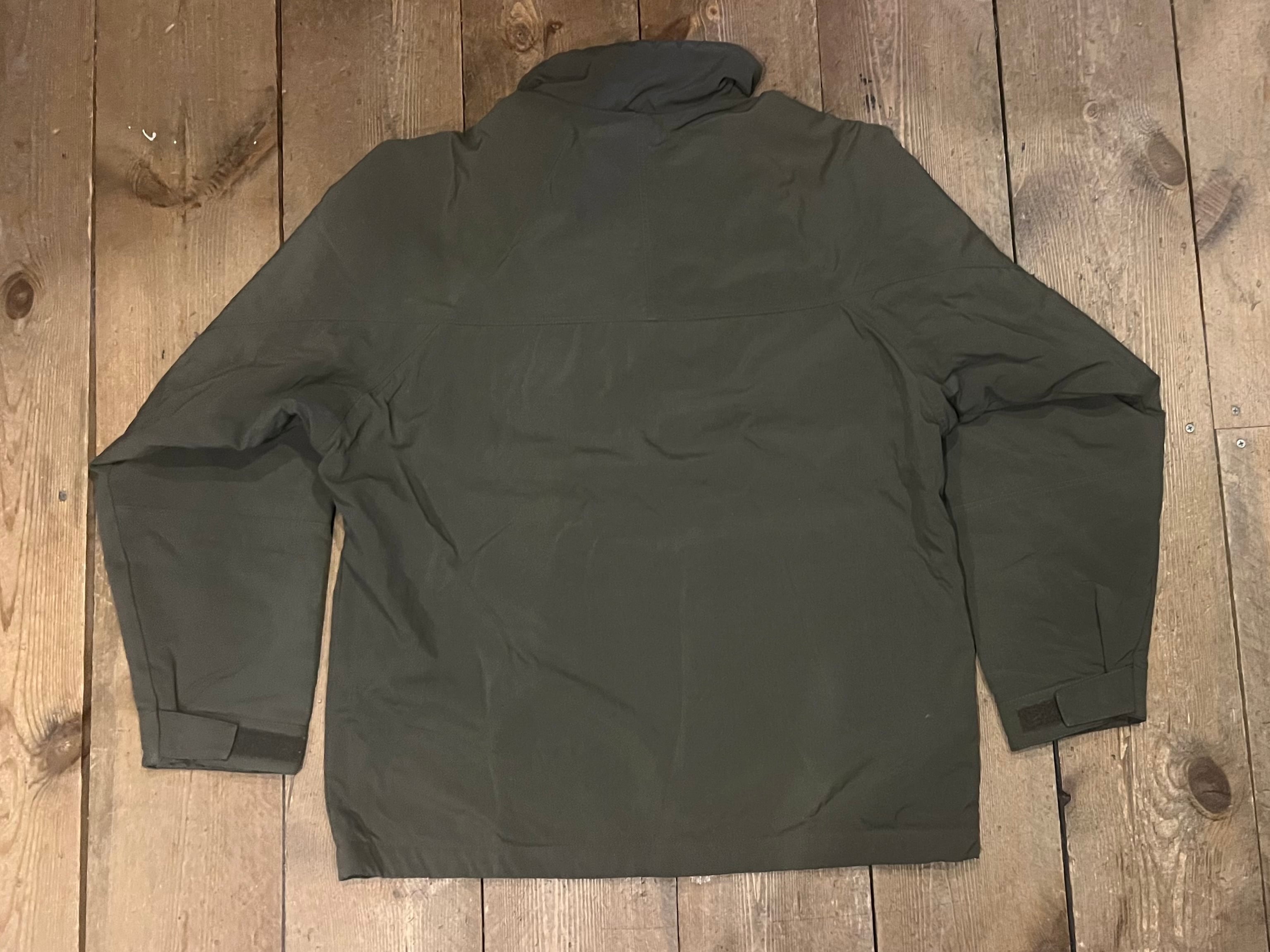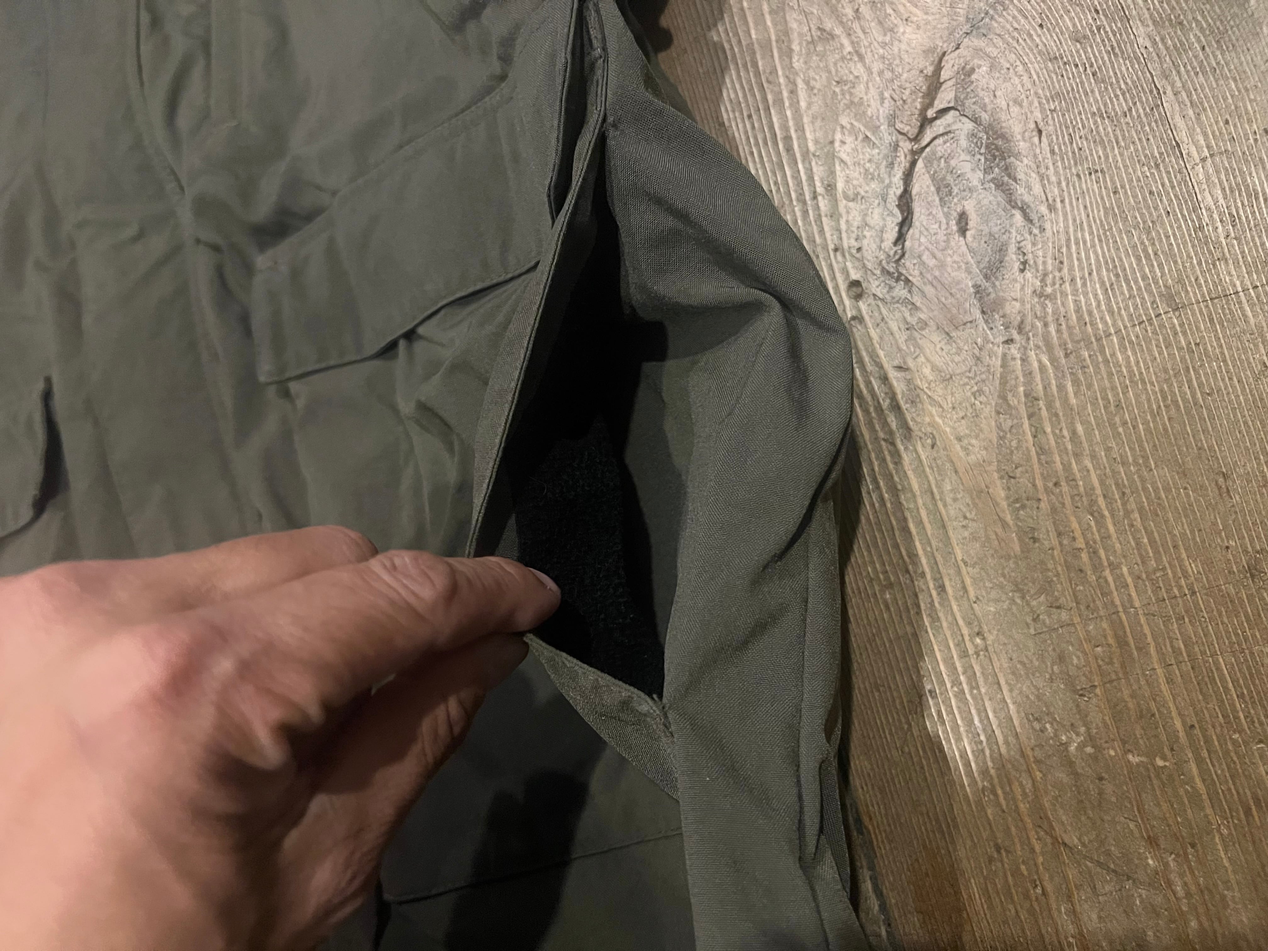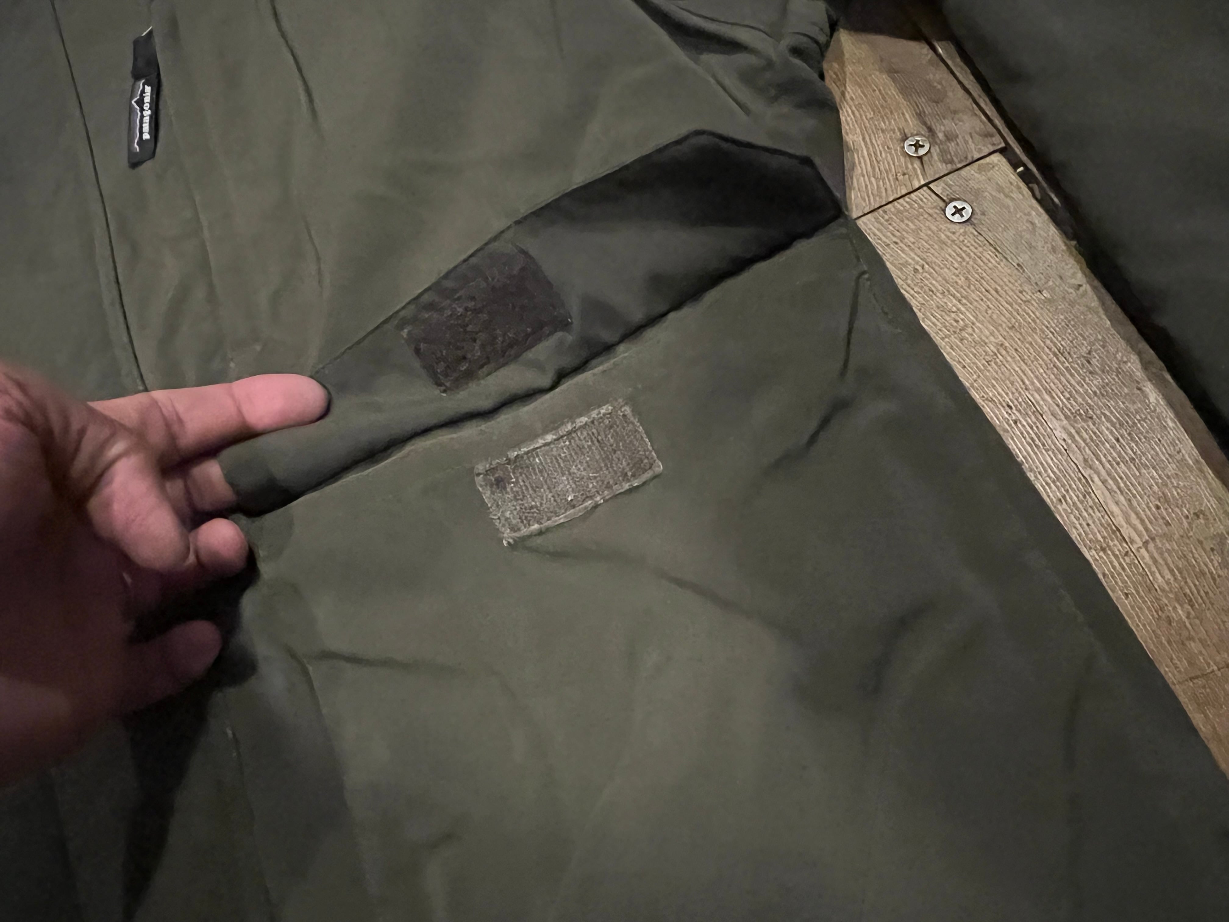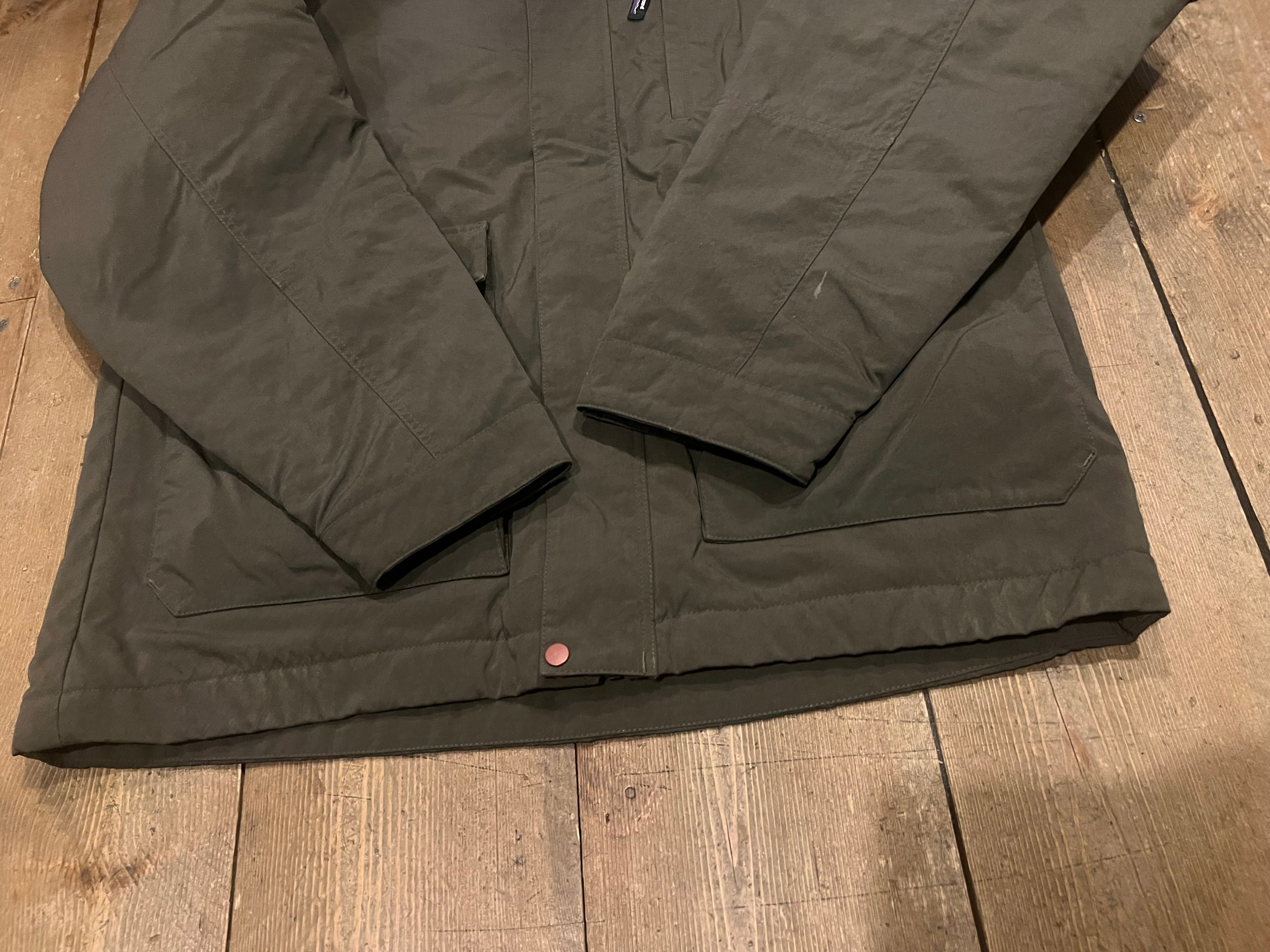 袖口辺りに僅かな汚れ、裏地のフリースの生地の折り返し部分(襟裏)の生地のスレがあります