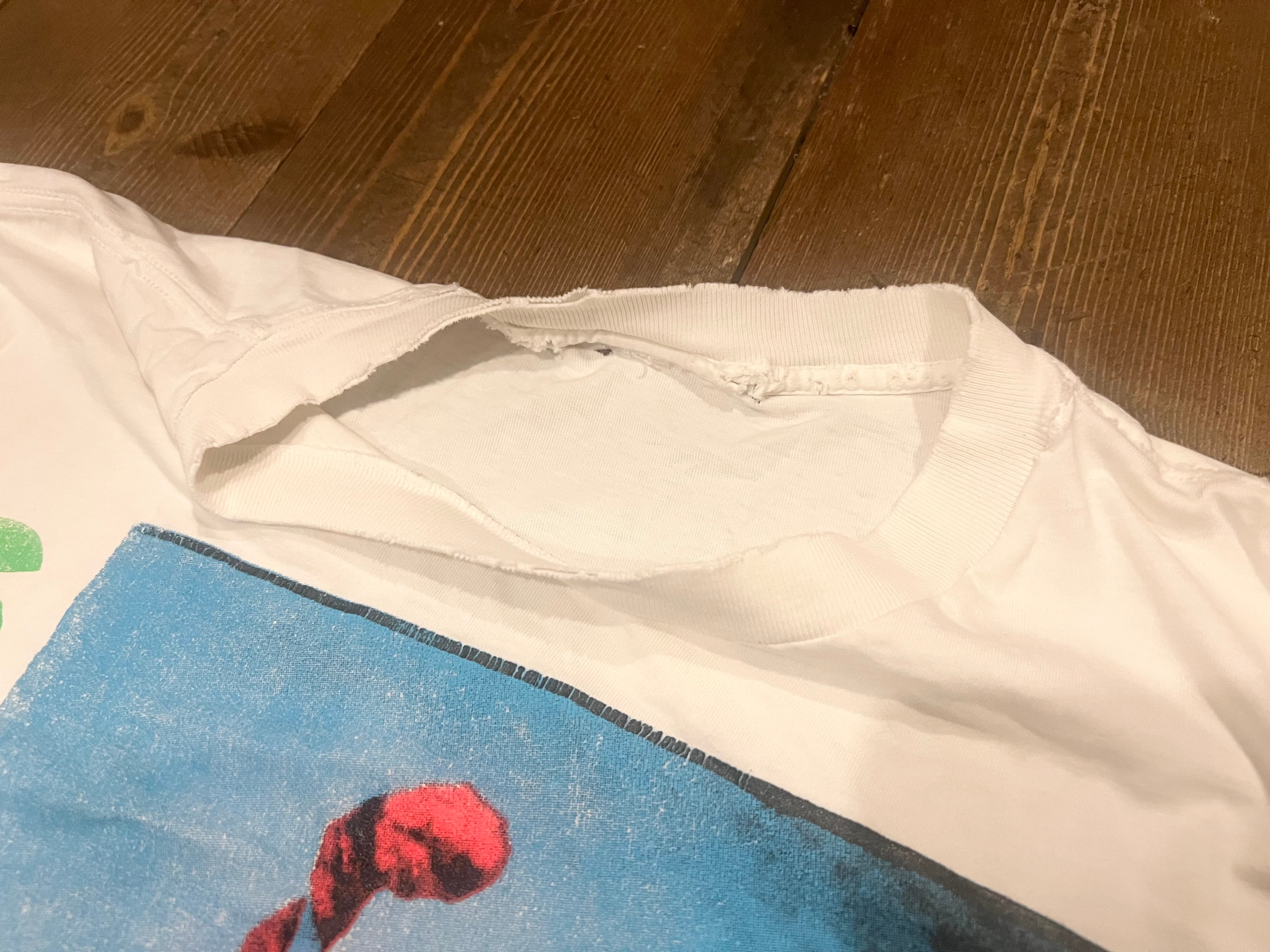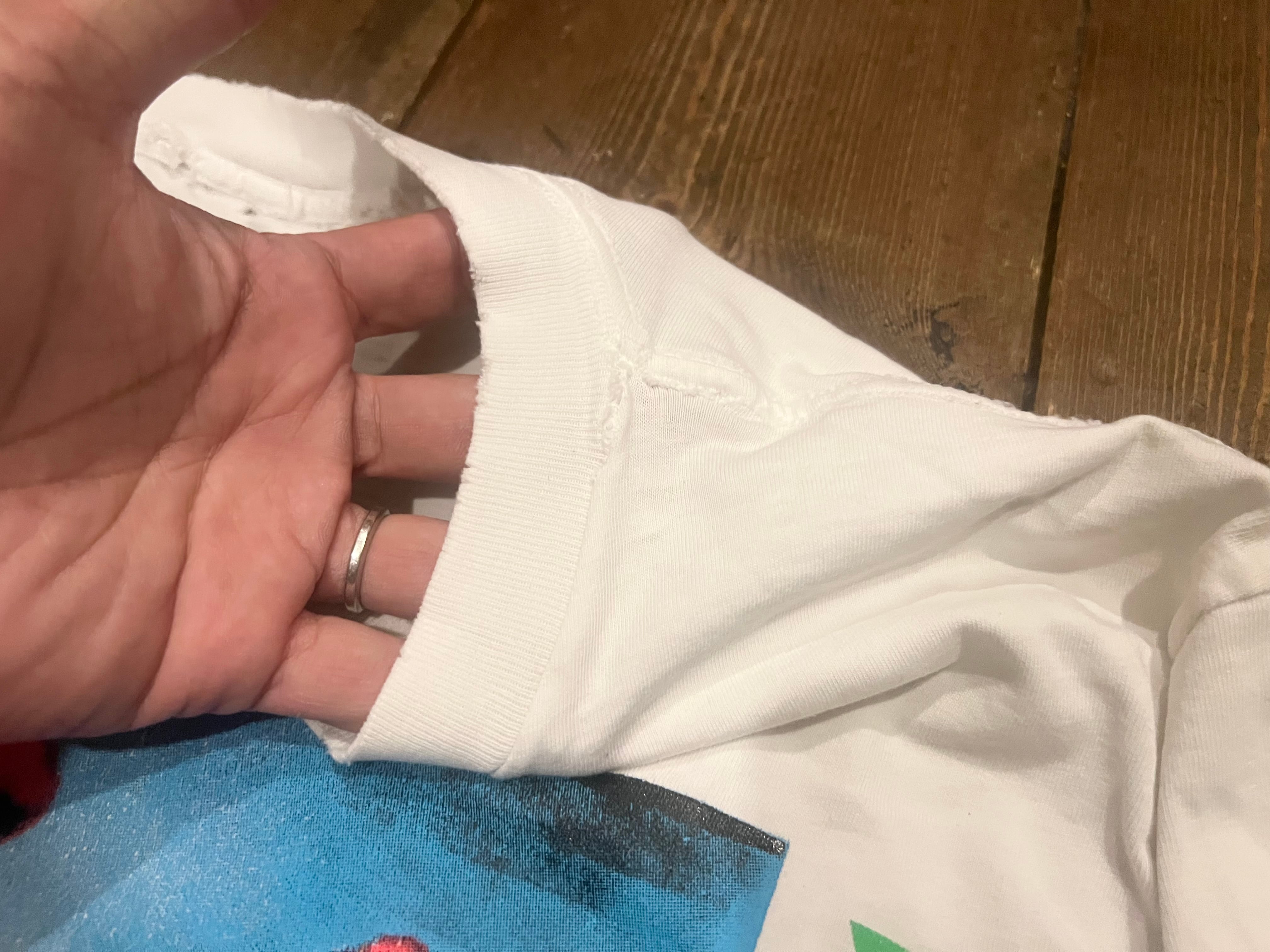 ネック、袖口、裾などスレがあります