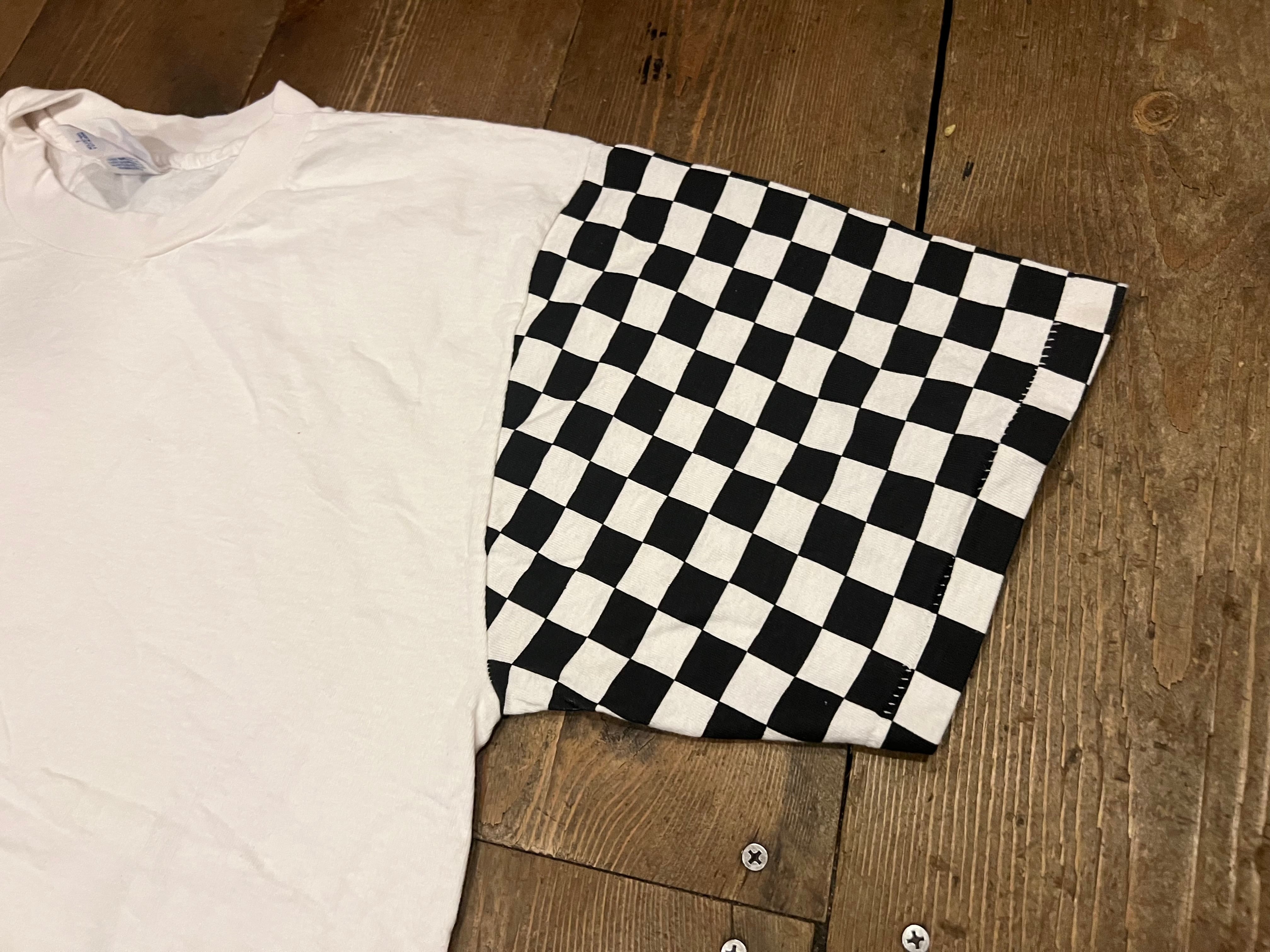 90年代モノでボディは白の無地、袖はチェッカー