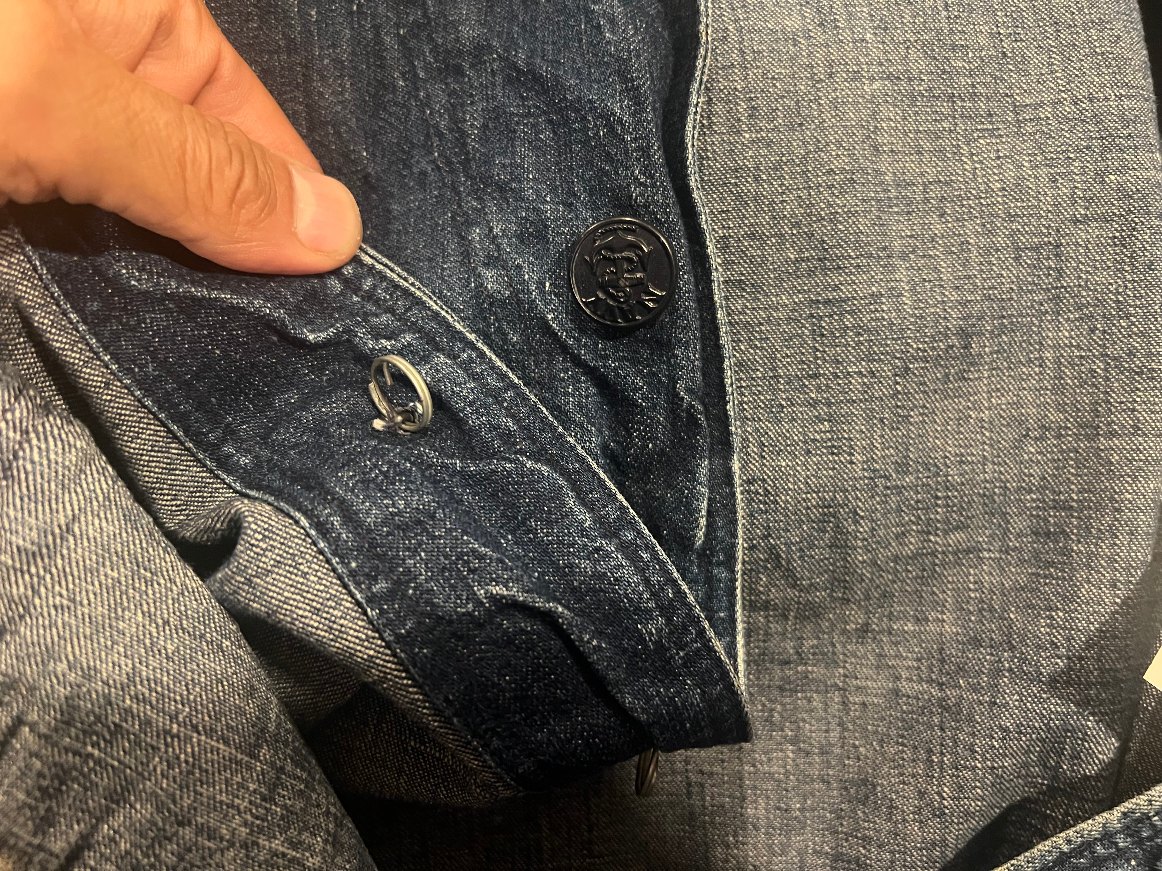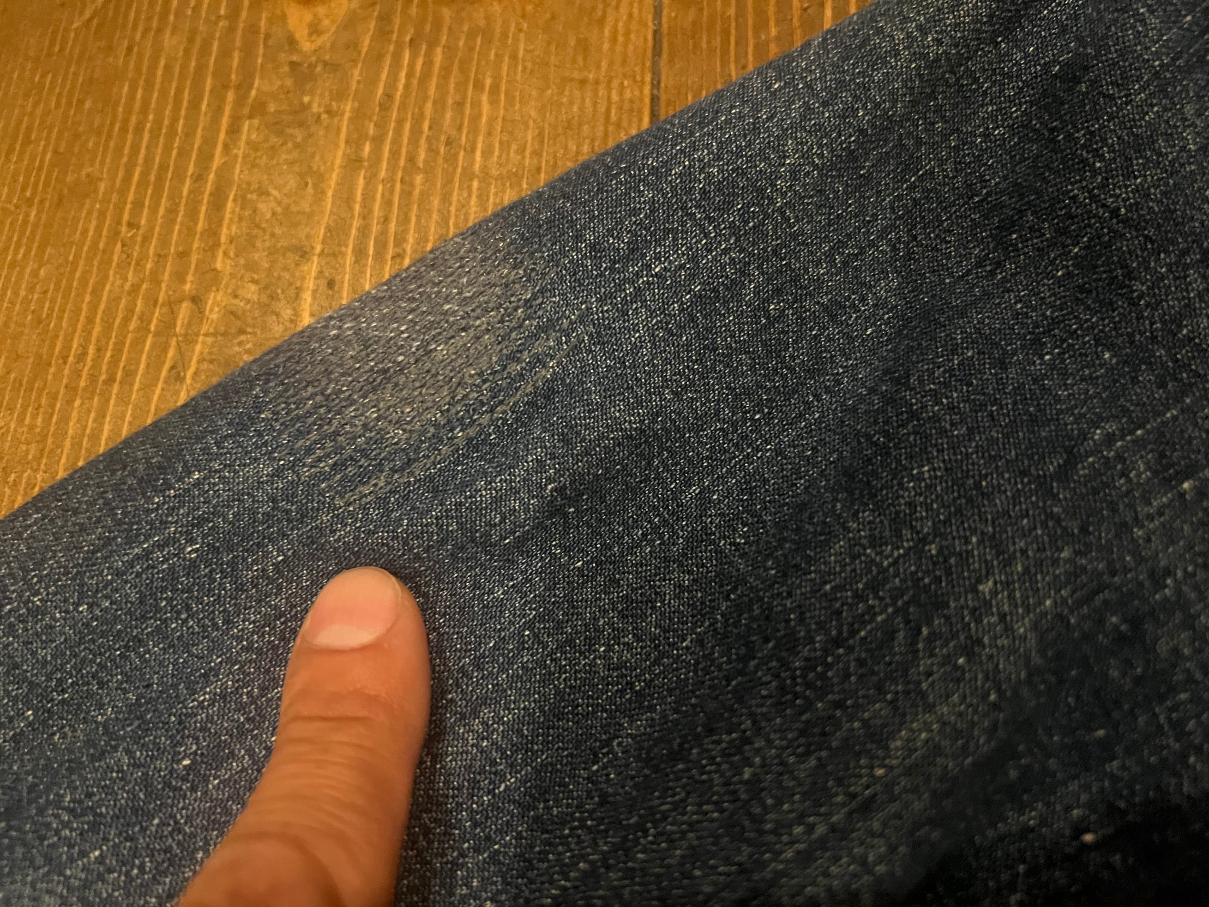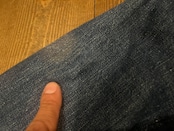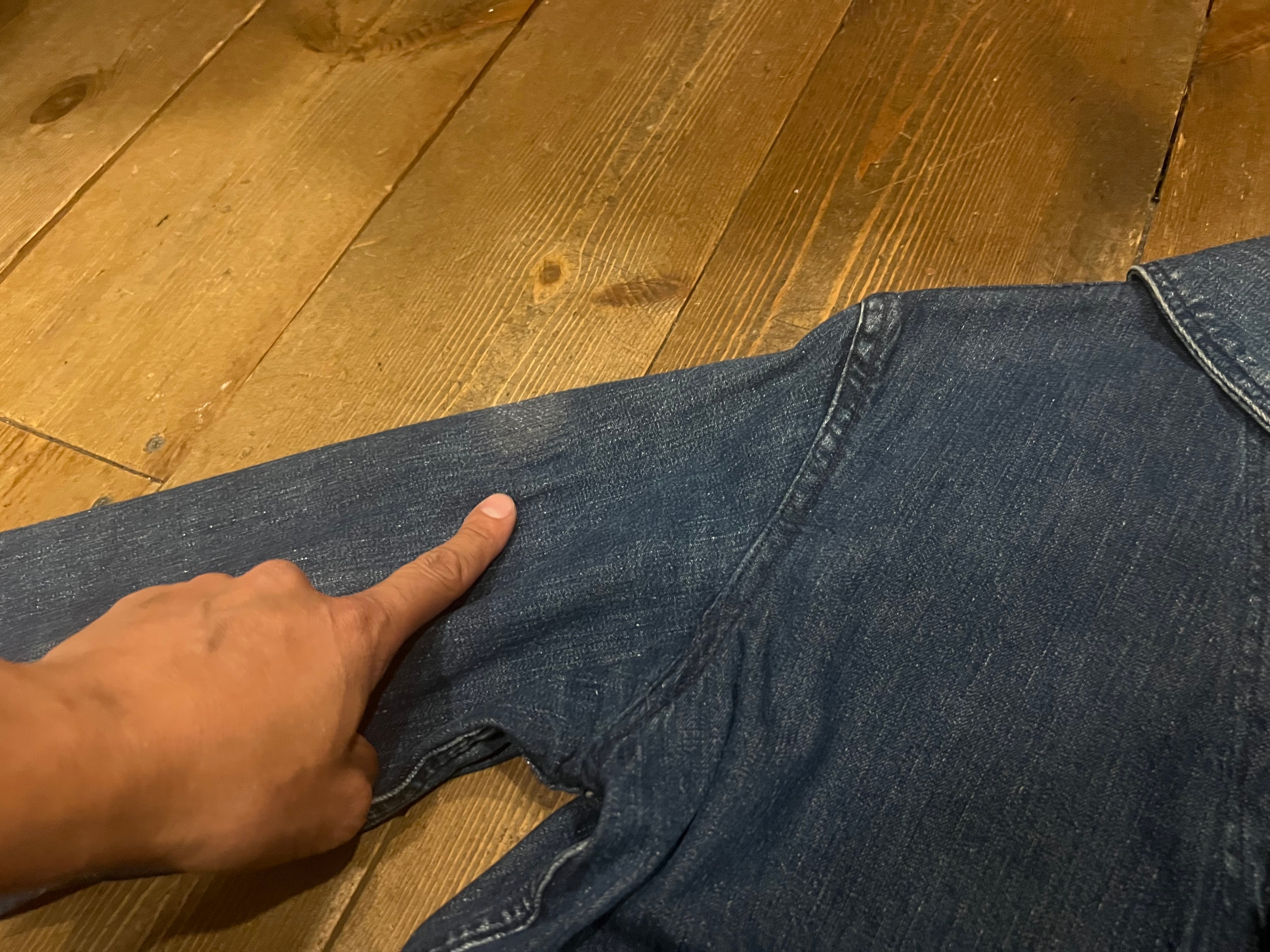 袖の指を当てている位置にタタキリペアがあります