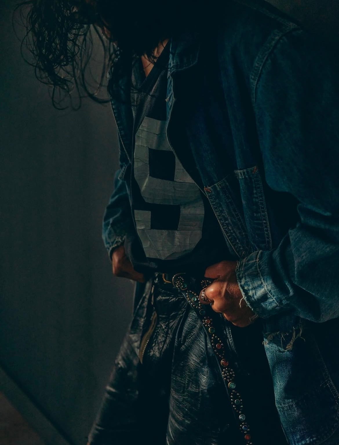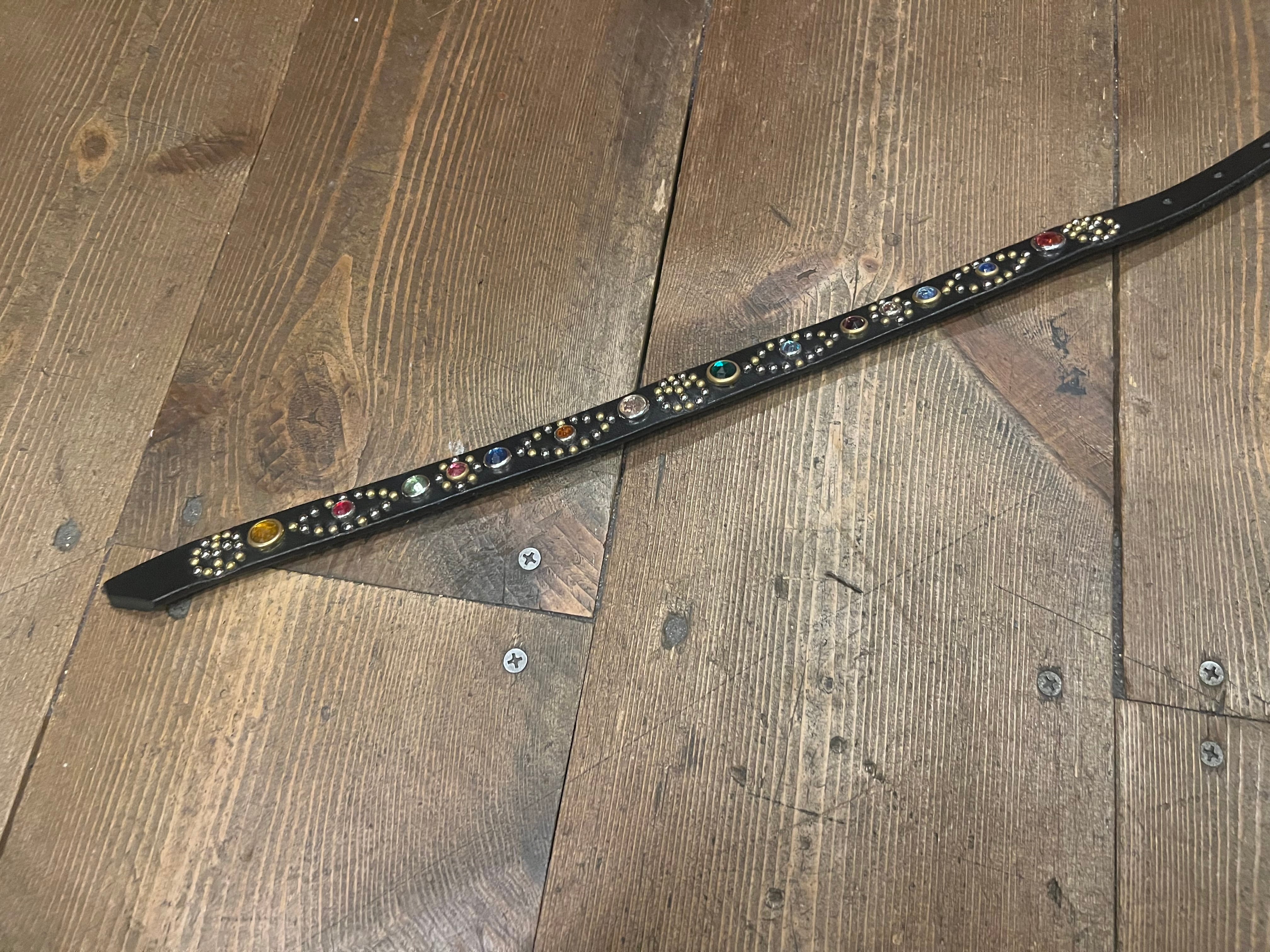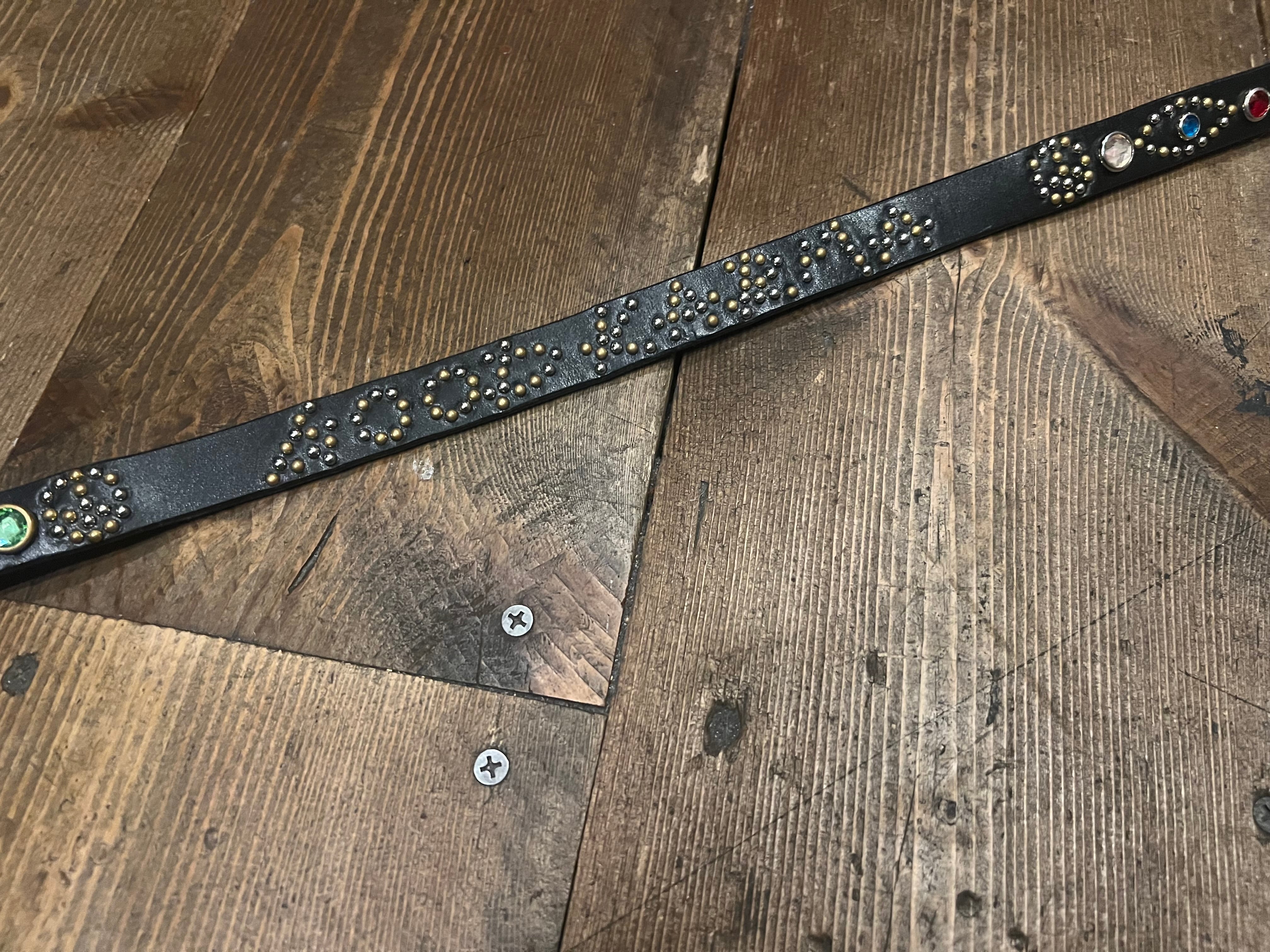 スタッズ、ラインストーン共にランダムなカラー使いになった全て1点モノ仕様