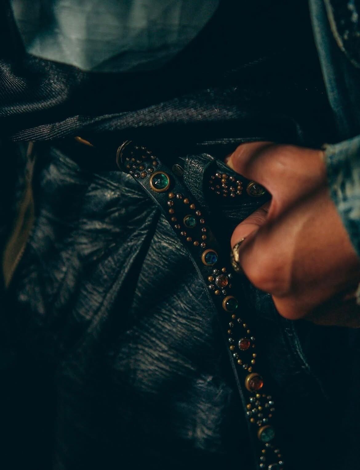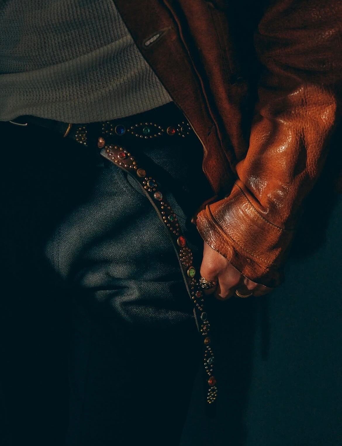 スタッズ、ラインストーン共にランダムなカラー使いになった全て1点モノ仕様