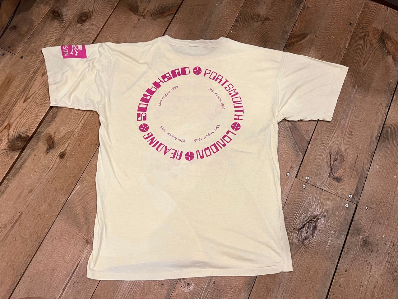 淡いイエローボディにビビットなピンクプリント